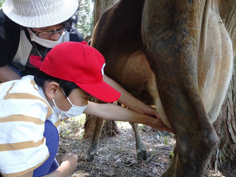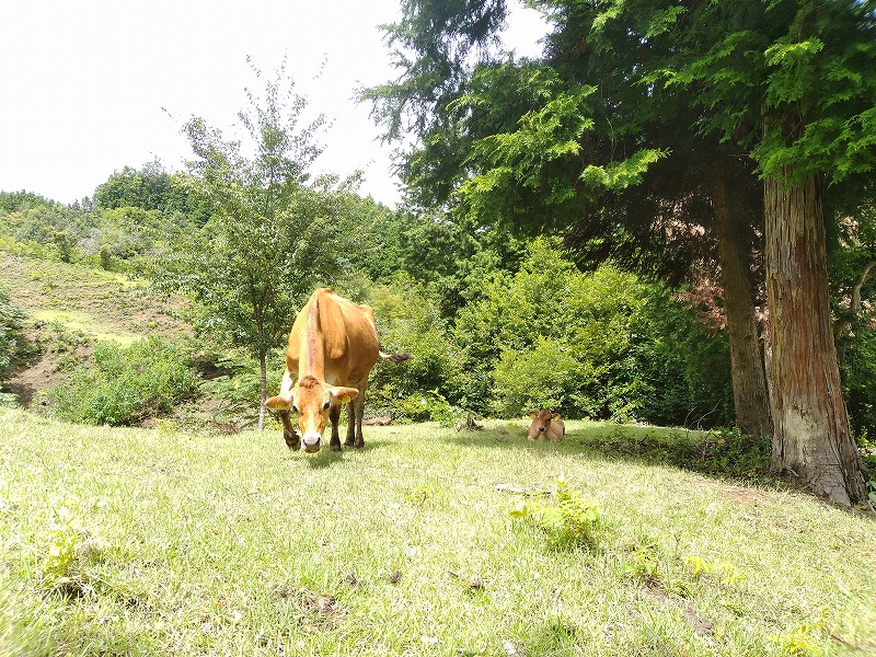 乳牛を山に放牧する山地酪農をしているふくふく牧場の放牧地は、牛はもちろん木々や草花、虫たちでとても賑やかです。そんなたくさんの生き物に包まれてのトレッキングは、都会から来られるお客さんたちにとってはなかなか無い場面です。