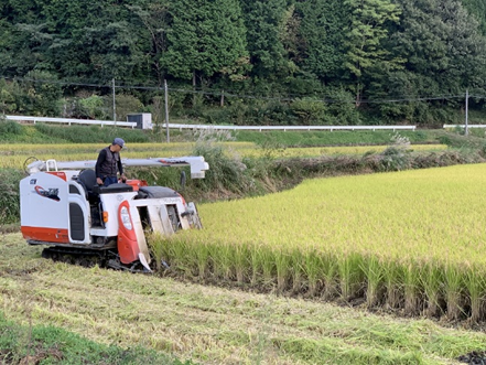 稲刈りは天候との勝負でもありますので、お天気のいい週末などは、この作業受託の乾燥・調整の依頼が集中することになり、稲刈りをしつつも作業場には必ずひとり付いておく、という状況が続きます。また、よそのお米と混ざってはいけないので、機械に目一杯入れての作業ができないという難しさもあります。 そして、この合間をぬってもちろん自社の稲刈りも行います。