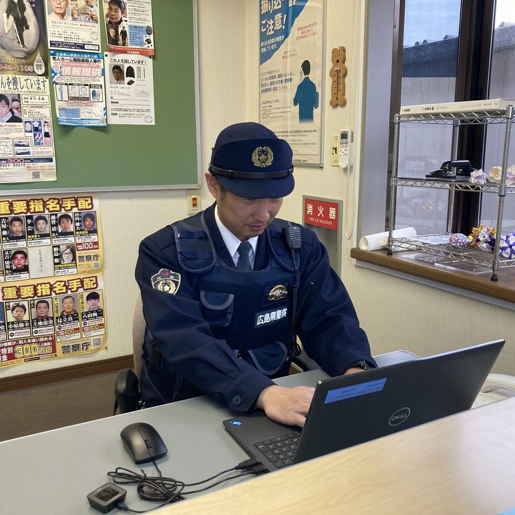 最初の赴任地である広島東警察署では、交番勤務が3年、初動捜査係が1年。その後、広島中央警察署へ異動後に1年間交番勤務をされたあとは、ここ口和に来るまでは約11年続けて刑事畑を歩んでこられました。